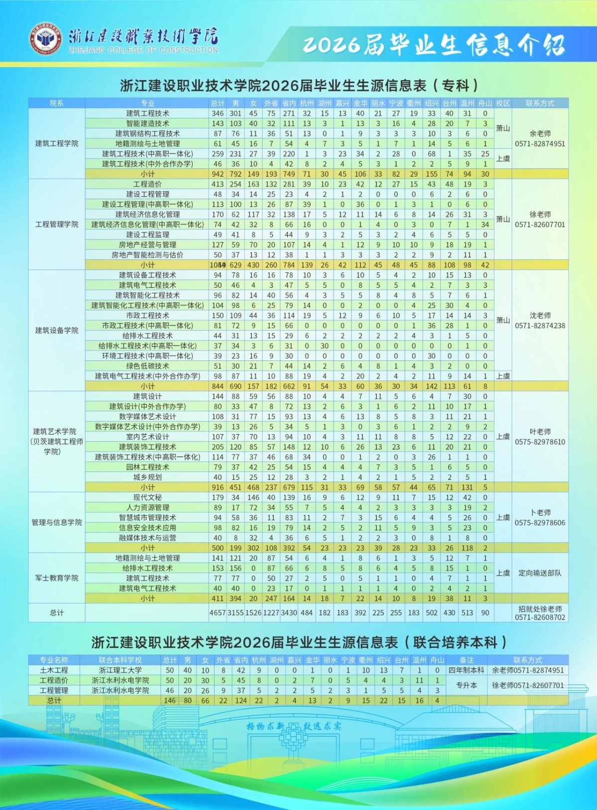 尊敬的用人单位: 衷心感谢贵单位长期以来对我校就业工作的关心与支持! 秋季是高校毕业生求职关键期,为更好搭建高校毕业生与用人单位之间的供需对接平台,满足用人单位的引才需求,促进毕业生更高质量充分就业,我校将举办2025年秋季校园招聘会,诚挚邀请贵单位莅临参会,广纳贤才!具体事宜通知如下: 一、组织单位 指导单位:浙江省住房和城乡建设厅 主办单位:浙江省职业介绍服务指导中心、杭州市就业管理服务中心、杭州市人才管理服务中心 承办单位:浙江建设职业技术学院 二、时间与地点 时间:2025年11月6日(星期四)13:00-16:00 地点:浙江建设职业技术学院杭州萧山校区体育馆(萧山区学知路151号) 三、参会对象 2026届毕业生及往届未就业毕业生,有招聘需求的用人单位。 四、报名方式 登录浙江建设职业技术学院就业网(https://jyw.zjjs.edu.cn)完成企业注册,上传企业营业执照扫描件,进入大型招聘会页面,填写参会相关内容(已注册企业可直接登录大型校园招聘会页面填写)。审核通过后将通过短信或邮件发送参会确认。 报名截止时间为即日起至2025年10月31日。 五、参会说明 (一)费用提供。免收展位费,提供一桌两椅及饮用水,其余费用自理。用人单位如遇特殊情况需取消或改期,请提前3个工作日告知。 (二)宣传材料。请自备展架或纸质材料(含单位简介、招聘职位、薪资待遇及岗位要求等),并在指定展位设摊。 (三)交通提示。校内停车位有限,建议绿色出行(杭州地铁19号线耕文路站出站步行约800米)。 (四)招聘规范。禁止发布虚假、传销或歧视性信息,违者取消参会资格;仅限本单位直接用人需求,不得为其他单位代为招聘;请妥善保管学生应聘材料,严禁泄露学生信息。 六、联系方式 招聘会咨询:秦老师 0571-82608702 用人单位QQ群:361563232 二级学院对接: 建筑工程学院 余老师 0571-82874951 工程管理学院 徐老师 0571-82607701 建筑设备学院 沈老师 0571-82874238 建筑艺术学院 王老师 0575-82978610 管理与信息学院 卜老师 0575-88978606 校园地图 |